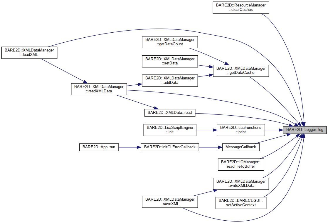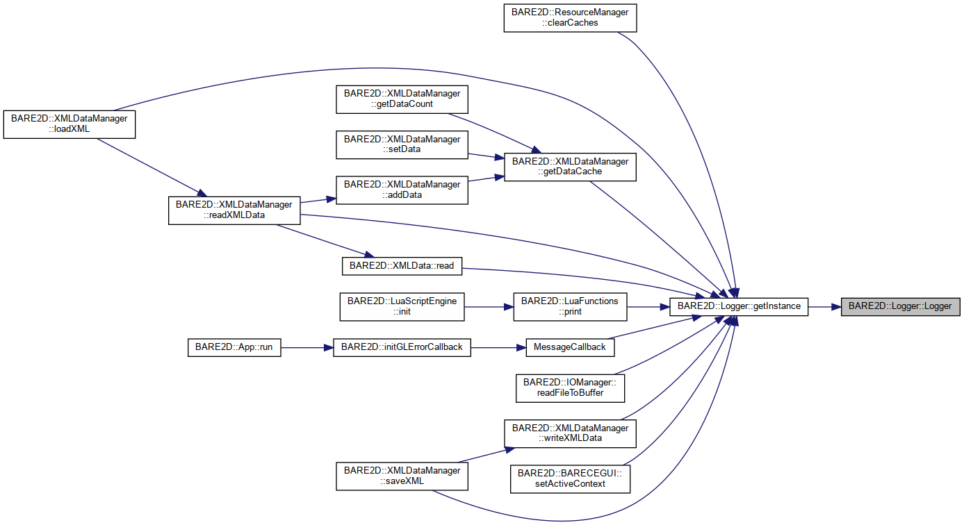 Collaboration diagram for BARE2D::Logger:Public Member Functions | |