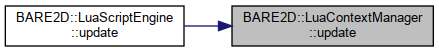 Here is the call graph for this function:| void BARE2D::LuaContextManager::update | ( | ) |