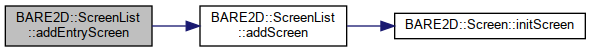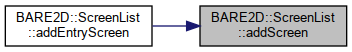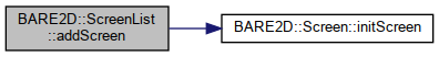 Here is the call graph for this function:| void BARE2D::ScreenList::addScreen | ( | Screen * | screen | ) |