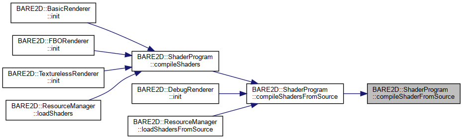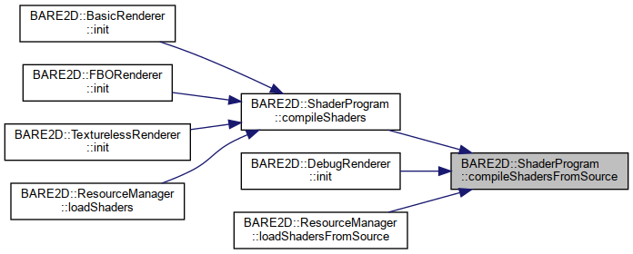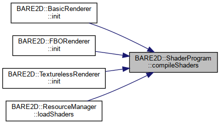 Here is the caller graph for this function:| void BARE2D::ShaderProgram::compileShadersFromSource | ( | const char * | vertexSource, |