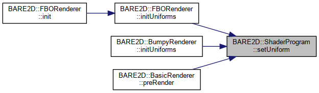 Here is the caller graph for this function:| void BARE2D::ShaderProgram::setUniform | ( | const std::string | uniform, |