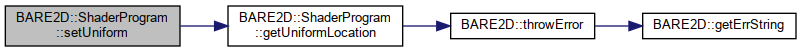Here is the call graph for this function:| void BARE2D::ShaderProgram::setUniform | ( | const std::string | uniform, |