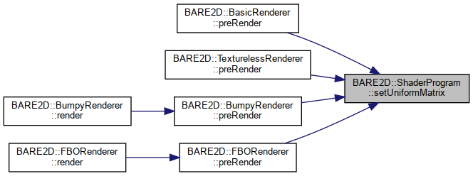Here is the call graph for this function:| void BARE2D::ShaderProgram::setUniformMatrix | ( | const std::string | uniform, |