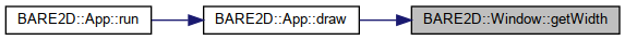 Here is the caller graph for this function:| unsigned int BARE2D::Window::getWidth | ( | ) | const |