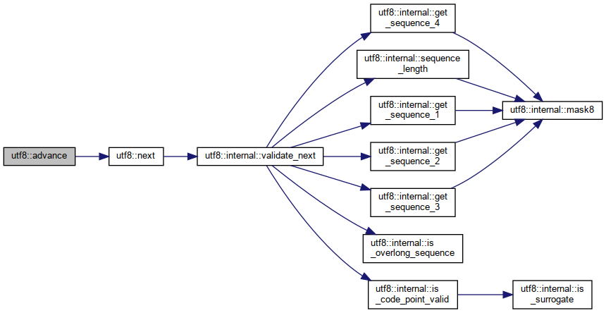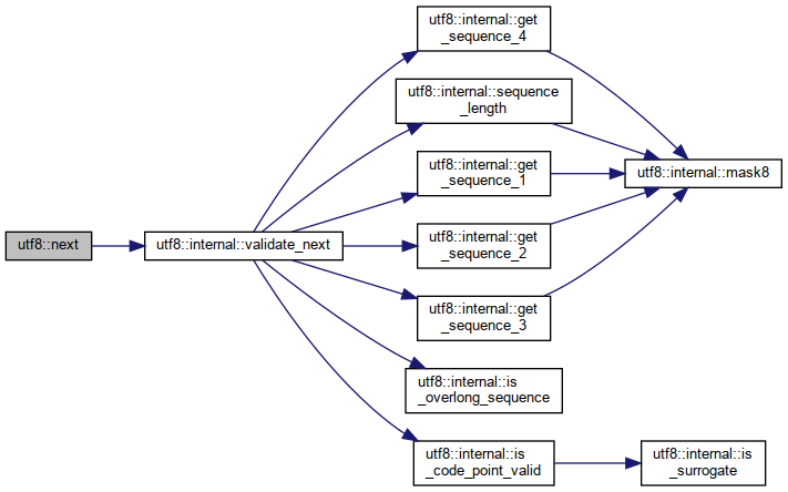 Here is the call graph for this function:| uint32_t utf8::next | ( | octet_iterator & | it, |