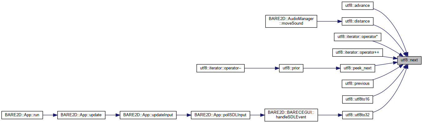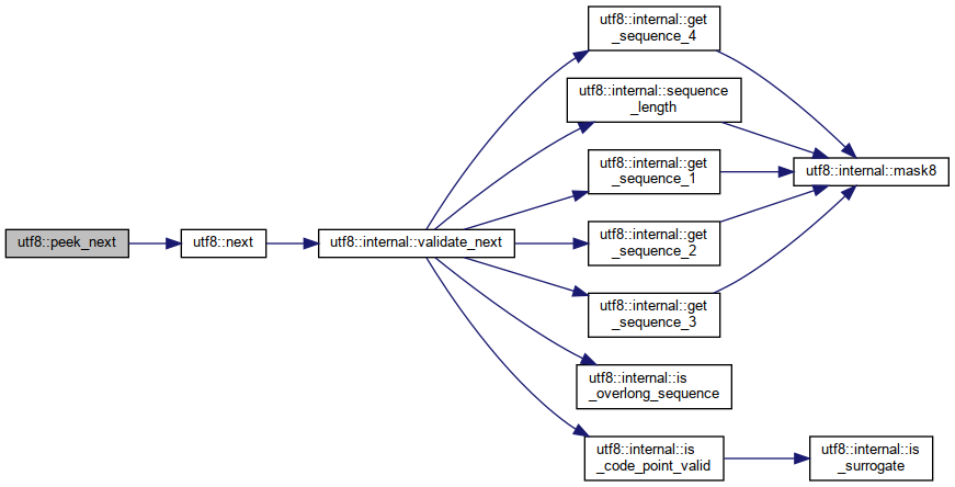 Here is the caller graph for this function:| uint32_t utf8::peek_next | ( | octet_iterator | it, |