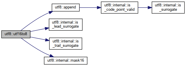 Here is the call graph for this function:| octet_iterator utf8::utf16to8 | ( | u16bit_iterator | start, |