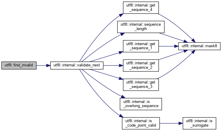 Here is the caller graph for this function:| octet_iterator utf8::find_invalid | ( | octet_iterator | start, |