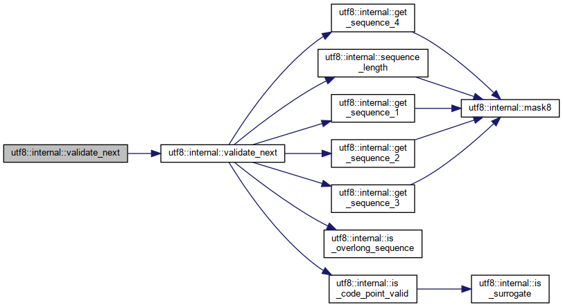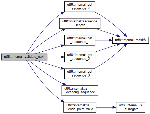 Here is the call graph for this function:| utf_error utf8::internal::validate_next | ( | octet_iterator & | it, |
